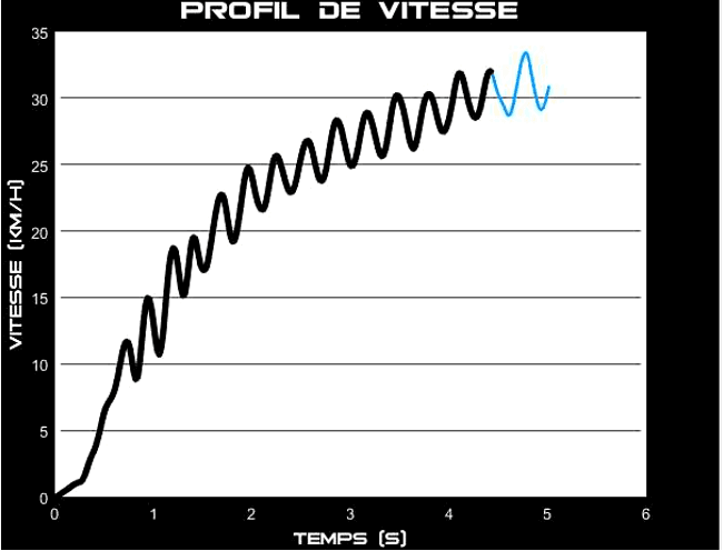 La courbe produite par le SpeedTracker suggère une asymétrie importante sur le départ.